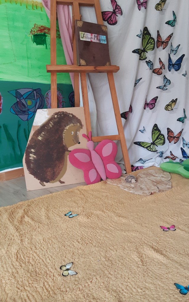 Concrètement, un espace de détente avec une mise en scène, nourrit l’attention et le ressenti, à l’écoute du livre. Viennent s’ajouter, un temps d’échanges puis un moment de relaxation pour travailler sur les émotions : les nommer, les ressentir, les contenir et enfin, les traduire par l’instant créatif.